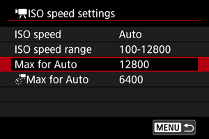 • With [AUTO] selected, ISO speed is set automatically.