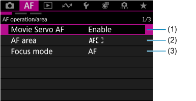 Tab Menus: AF (Movie Recording)