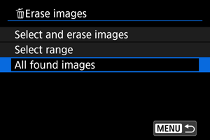 - If you select [All found images], all the images filtered by the search conditions will be erased.