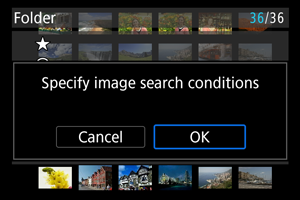 - Search conditions may be cleared after operations involving camera power or card changes and editing, adding, or erasing images.