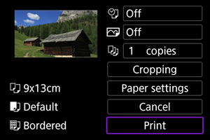 - [Print] can be selected only when an image is selected and the printer is ready to print.