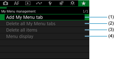 Delete all My Menu tabs (Барлық My Menu (Менің мәзірім) қойындыларын жою)