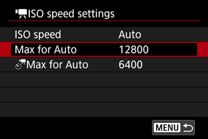 Фильм жазудағы ISO авто үшін максималды шекті [], [
