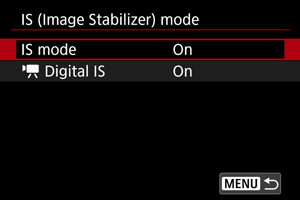 : IS (Сурет тұрақтандырғышы) режимі] параметрін (, ) таңдаңыз.