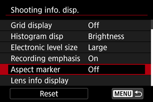 : Түсіру ақпаратының дисплейі] параметрін (, ) таңдаңыз.