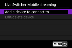 - Live Switcher Mobile қолданбасында қосылым үшін камераны таңдаңыз.