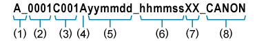 Файл атаулары төрт әріпті-сандық таңбадан, одан кейін төрт санды файл нөмірінен () және файл кеңейтімінен тұрады. Бірінші төрт әріпті-сандық таңбаны өзгертуіңізге болады, ол әдепкі бойынша әрбір камера үшін бірегей және камера жеткізілгенде орнатылады.