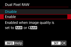 : Қос пиксельді RAW суреті] параметрін таңдаңыз ().