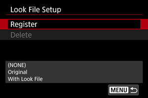 [Look File Setup/Лук файлын орнату] параметрін таңдаңыз.