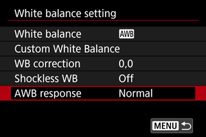 Автоматты ақ түс балансының жауап беру жылдамдығын орнатуға болады. Түсіру жағдайларына сәйкес болу үшін жауап берудің үш деңгейінен таңдаңыз.