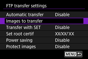 FTP арқылы тасымалданған суреттерді автоматты түрде қорғау үшін [Enable/Қосу] параметріне орнатыңыз ().
