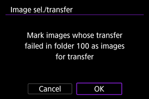 - Тасымалдау журналын тазалағаннан кейін [Select images not transferred/Тасымалданбаған суреттерді таңдау] түймесін таңдап, қалтадағы барлық суреттерді қайта тасымалдауға болады.