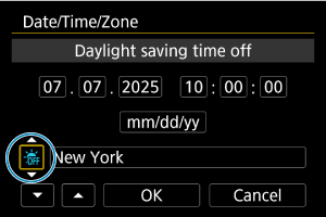 - Уақыт белдеуін немесе уақыт айырмашылығын енгізгеннен кейін [OK] тармағын таңдау үшін