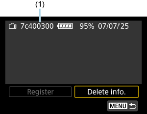 - Батареяларды камераға тіркеу бөлімінде 2-қадамдағы [Delete info./Ақпаратты жою] параметрін таңдаңыз.