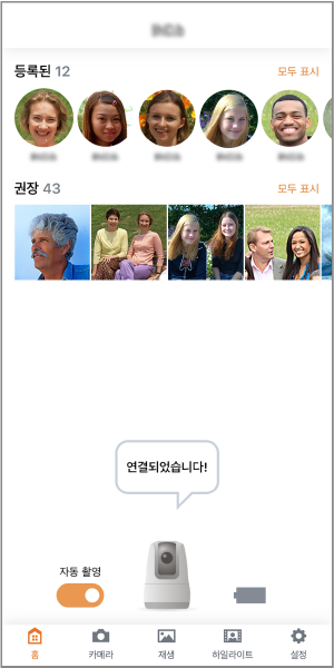 - 장치가 연결되면 Connect App for Mini PTZ Cam의 홈 화면이 표시되고 카메라의 통신 표시등이 켜집니다.