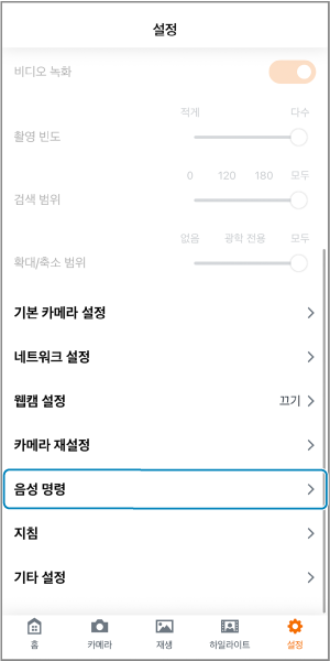 - 카메라까지의 거리, 주변 소음, 말투 또는 목소리 크기와 같은 일부 요인으로 인해 카메라가 음성 명령을 인식하지 못할 수 있습니다.