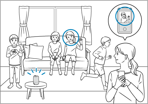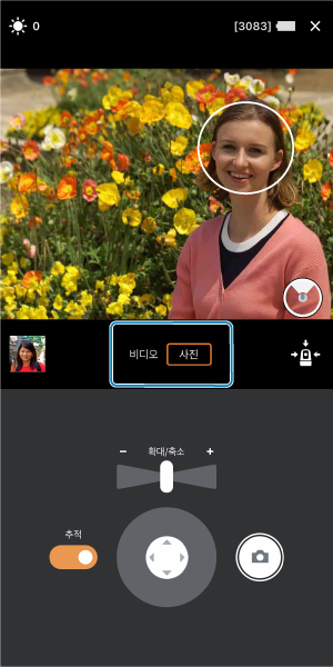 스마트폰으로 이미지를 보면서 원격으로 촬영합니다. 그룹 사진을 촬영하면서 이미지를 확인하거나, 자동으로 추적되는 피사체를 촬영하면서 이미지를 확인할 수 있습니다.