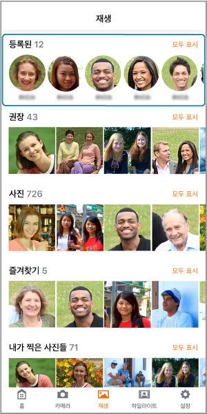 - [모두 표시]를 탭하면 등록된 모든 인물의 목록이 표시됩니다.
