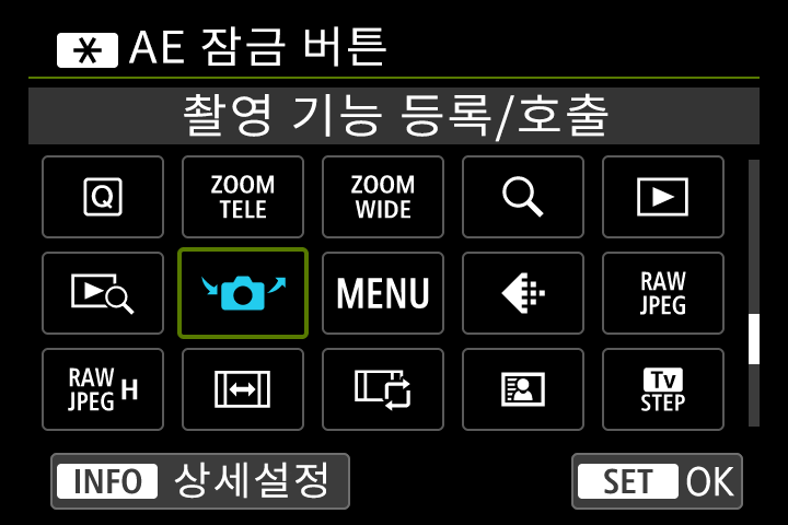[촬영 기능 등록/호출]을 AE 잠금 버튼에 설정하십시오.
