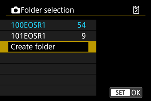 - Folders are named as in “100EOSR1,” with a three-digit folder number followed by five letters or numbers. A folder can contain up to 9999 images (file number 0001–9999). When a folder becomes full, a new folder with the folder number increased by one is created automatically. Also, if manual reset () is executed, a new folder will be created automatically. Folders numbered from 100 to 999 can be created.