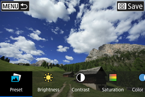 - You can select effects such as [Brightness] or [Contrast] by pressing