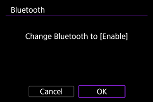 - A message is displayed if the camera is already paired with another device. Select [OK] to end the current Bluetooth connection.