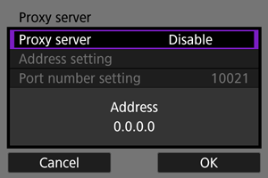 - Select [Address setting] or [Port number setting], then press