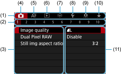 - (1) Main tabs