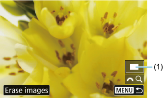 - The magnified view will appear. The position of the magnified area (1) is displayed in the lower right of the screen, along with [