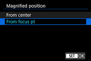 Magnified view starts from the AF point in focus. If the photo is taken with manual focus, the magnified view starts from the center of the screen.