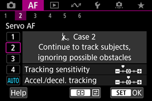 Shooting with Servo AF can be easily tailored to your subjects or shooting situations by selecting a Case * option. This feature is called the “AF Configuration Tool.”