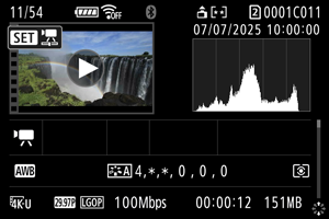 • Turn the Quick control dial 1 dial to select a 4K quality movie.