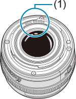 - Atjungę nuo fotoaparato objektyvą, padėkite objektyvą užpakaline dalimi aukštyn, uždėkite galinį objektyvo dangtelį, kad apsaugotumėte nuo subraižymo objektyvo paviršių ir elektrinius kontaktus (1).