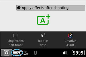 | Baterijos įkrovos lygis mažas, tačiau fotoaparatu dar galima naudotis. | |