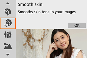 Kad fotografuojant portretus patraukliau atrodytų oda, naudokite režimą [] (Lygi oda). Vaizdai apdorojami taip, kad oda atrodytų lygesnė.