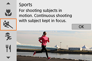 Judančius objektus, pavyzdžiui, bėgantį asmenį ar važiuojančią transporto priemonę, fotografuokite režimu [] (Sportas).
