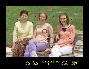 - Kai fotoaparatas sufokusuoja, vaizdo ieškiklio apačioje dešinėje pradeda šviesti fokusuotės indikatorius