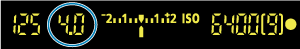 - Jei diafragmos reikšmė nemirksi, bus pasiekta standartinė ekspozicija.