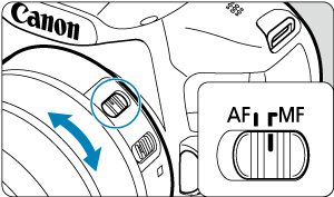 Pastumkite objektyvo fokusavimo režimo jungiklį į padėtį