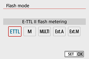 :Išorinės blykstės funkcijų nuostatos]. Nustatykite tiesiogiai išorine „Speedlite“ blykste.