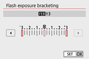 Išorinės „Speedlite" blykstės su skirtingų ekspozicijų serijos fotografuojant su blykste (FEB) funkcija gali automatiškai keisti išorinės blykstės galią, kai iš karto užfiksuojami trys kadrai.