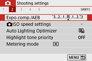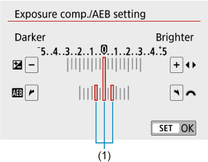 - AEB funkcija automatiškai neatšaukiama. Jei norite atšaukti AEB funkciją, atlikite 2 veiksmą ir išjunkite AEB diapazono rodmenį.