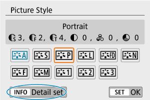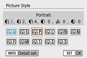 - Atsivers „Picture Style“ sąrankos pasirinkimo ekranas.