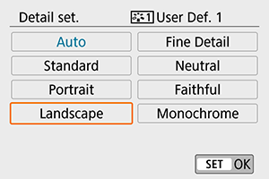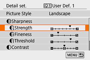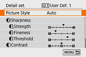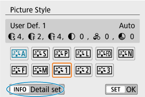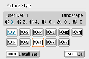 Pagrindinė „Picture Style“ sąranka bus rodoma parinkties [User Def. */Naudotojo apibr. *] dešinėje.