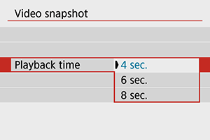 - Nurodykite vieno „Video snapshot“ klipo peržiūros trukmę.