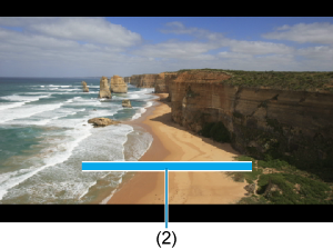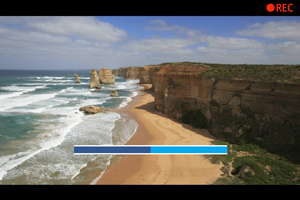- Rodoma mėlynos spalvos juosta, kuri nurodo įrašymo trukmę (2).