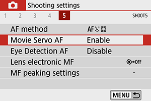 arba pakeitę AF metodą, funkcija „Movie Servo AF“ vėl įsijungs.