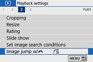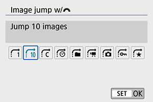 - Jei nustatyta [Jump images by the specified number/Peršokti per nurodytą kiekį vaizdų], norėdami pasirinkti, per kiek vaizdų peršokti, galite sukti ratuką