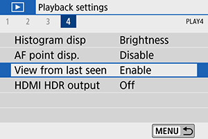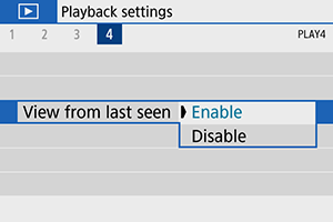 - [Enable/Įjungti]: peržiūra atnaujinama nuo paskutinio peržiūrėto vaizdo (išskyrus tuos atvejus, kai ką tik baigėte fotografuoti).