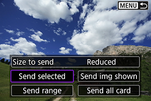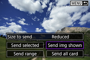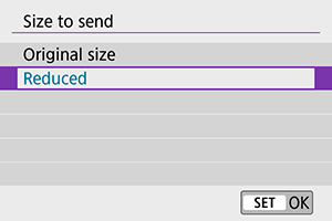 - Parinktis [Reduced/Sumažintas] būna įjungta tik jei nuotraukos užfiksuotos to paties modelio fotoaparatais kaip šis. Kito modelio fotoaparatais nufotografuotos nuotraukos siunčiamos nekeičiant jų dydžio.